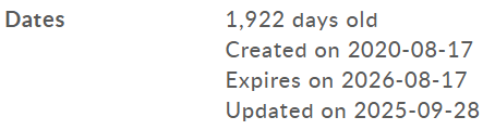 - домен был обновлен около двух месяцев назад;