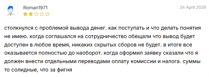 Изучив пользовательские оценки в Сети, считаем репутацию брокера на первую половину 2026 года смешанной.