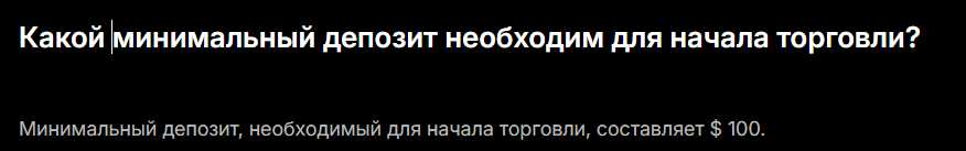 В разделе FAQ при этом минимальный депозит для старта работы – $100.