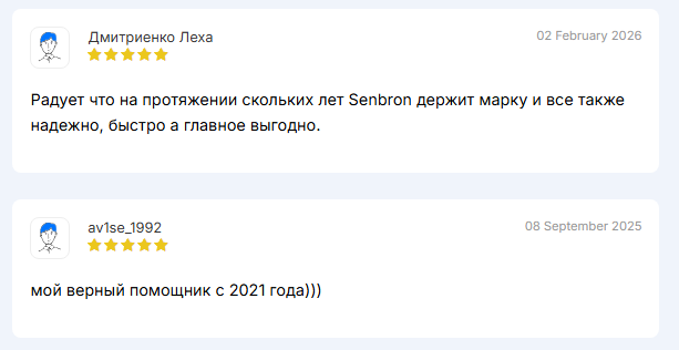 Отзывы о Senbron com есть только на одном сайте, при этом встречаются только положительные, но очень подозрительные комментарии. В них упоминается о работе платформы с 2021 года, что не может быть правдой, так как сервис появился только в 2026 году.