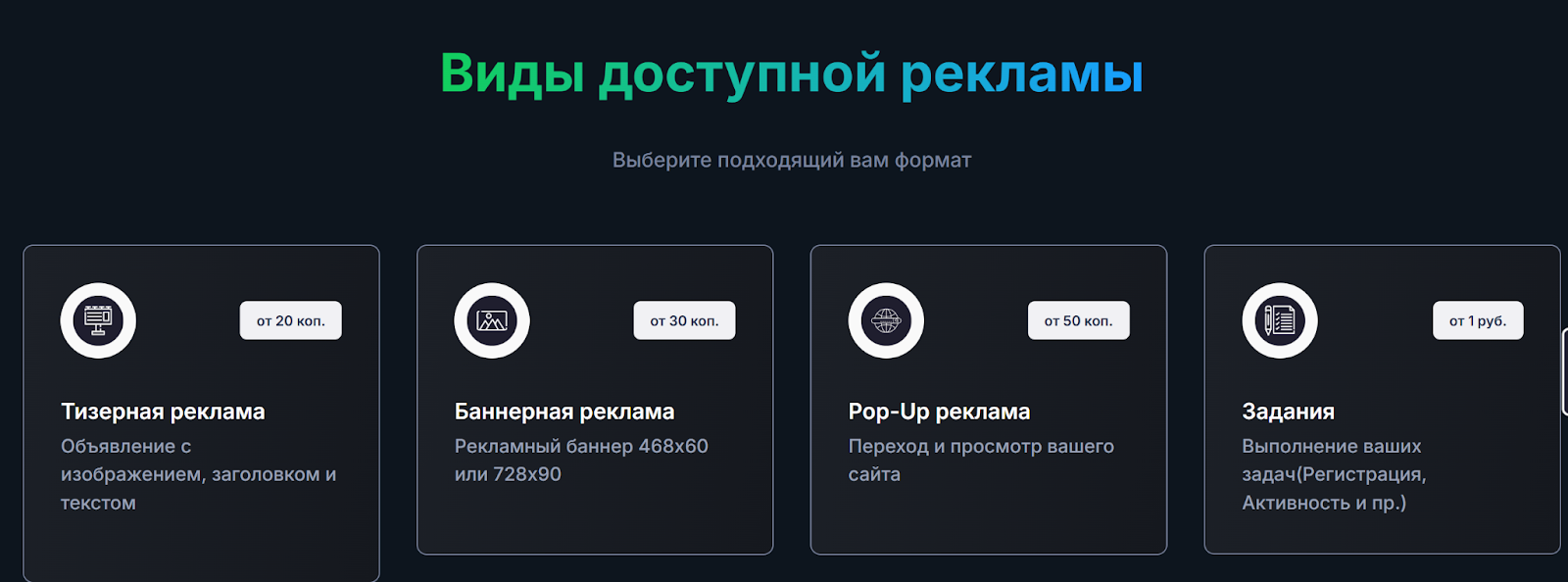 - задания — от 1 рубля, это может быть подписка на соцсеть, регистрация на сайте и так далее.