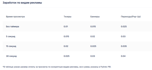 - за рекламу без таймера можно получить от 1 до 2,5 копеек;
