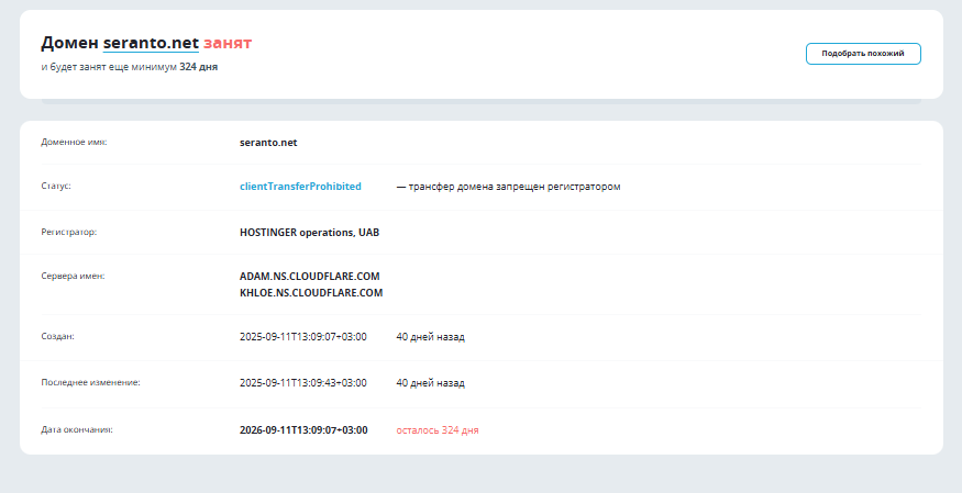 Анализ домена показал, что сайт был создан в сентябре 2025 года и существует немногим больше месяца. Этого срока может быть недостаточно для стабильного обслуживания клиентов, поскольку у администрации не хватает опыта.