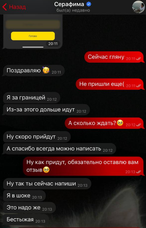 На своем Телеграмм-канале Серафима Волкова делилась положительными отзывами от победителей, но вероятнее всего эти рецензии были получены обманом.