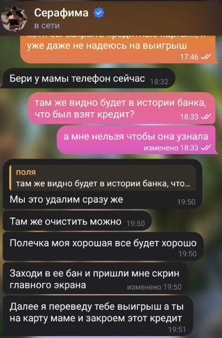 В то же время о Телеграм-канале Серафимы Волковой представлено огромное количество негативных комментариев на сторонних источниках, ее называют мошенницей. Энтузиасты даже создали группу, где делятся историями о том, как их обманули от имени девушки-блогера. В том числе пострадавшие жалуются на то, что Серафима уговаривала их оформить кредиты и на себя, и на родственников.