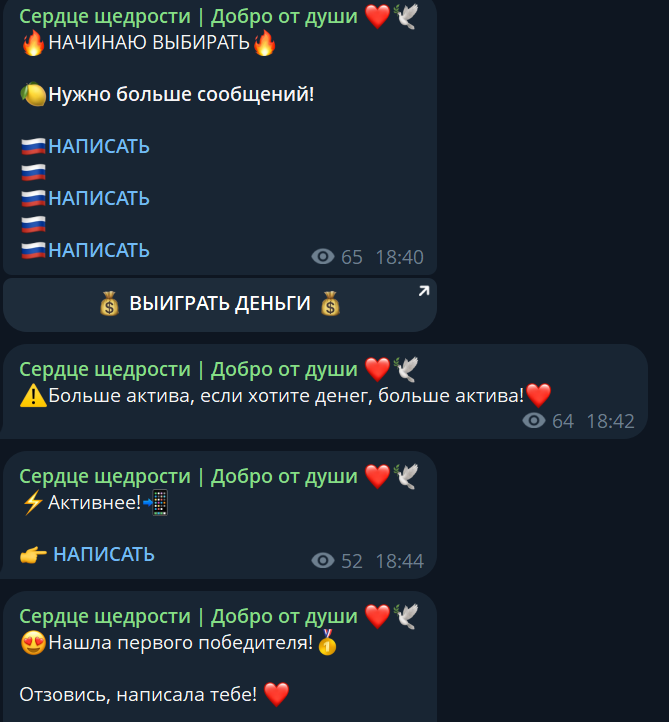 Очередной развод! «Сердце щедрости» обещает легкие деньги, но на деле — пустышка. Подписался, отправил сообщения, а в ответ — тишина. Не ведитесь на этот обман!