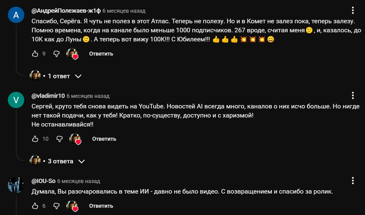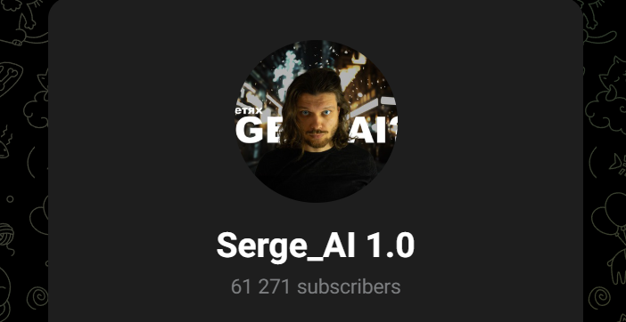 - пользователь Serge ai является обыкновенным блогером с крупной аудиторией, который занимается рассмотрением нейросетей;