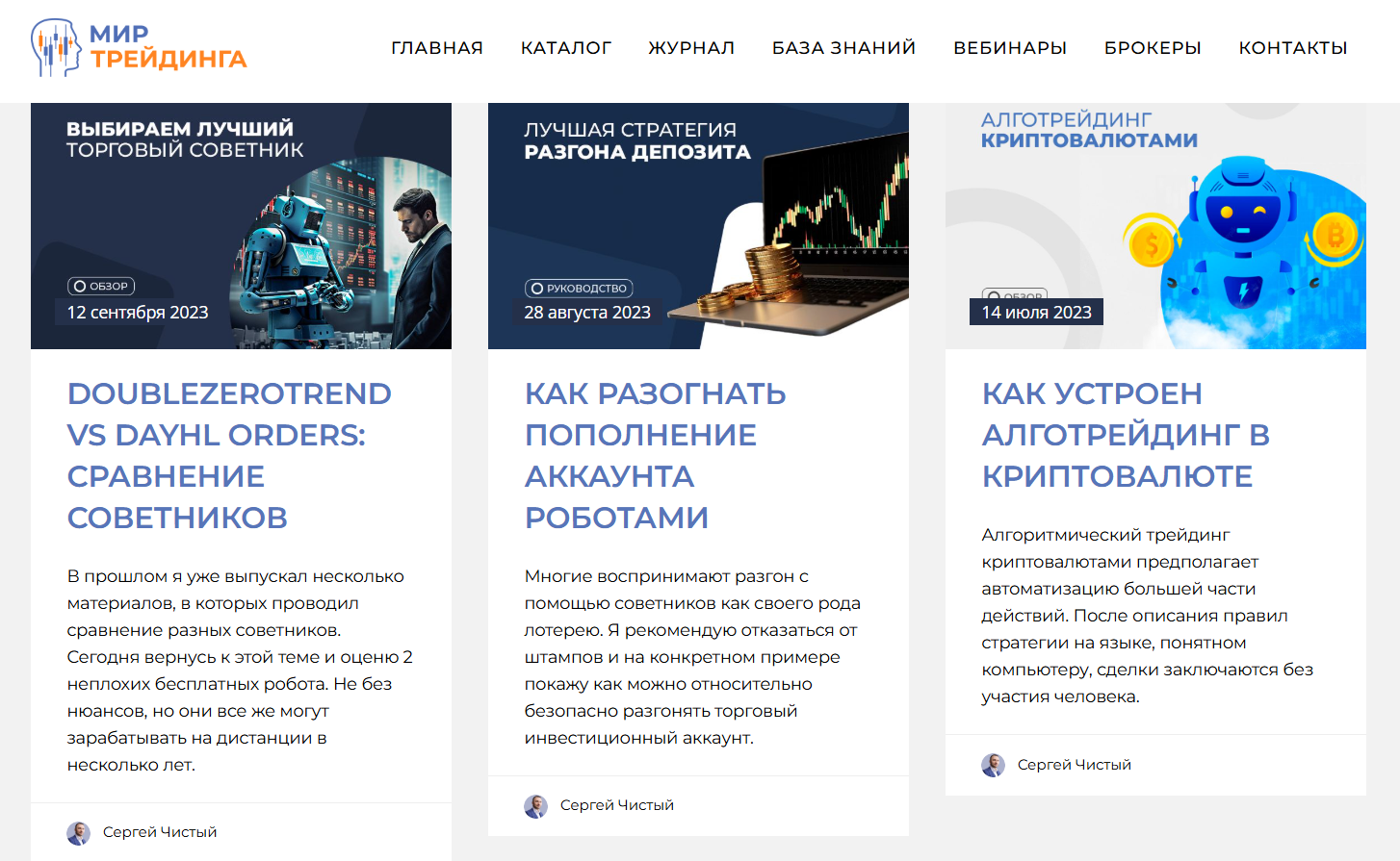 TradingsWorld com отзывы имеет негативные, хотя данная платформа служит сборником материалов для начинающих спекулянтов, а профессиональным трейдером здесь является Сергей Чистый. Его специализацией является автоторговля и наставничество для выбора и настройки ботов. Далее проанализируем деятельность этого специалиста подробнее, изучим его предложения в рамках проекта и сопоставим имеющиеся отзывы от реальных клиентов.