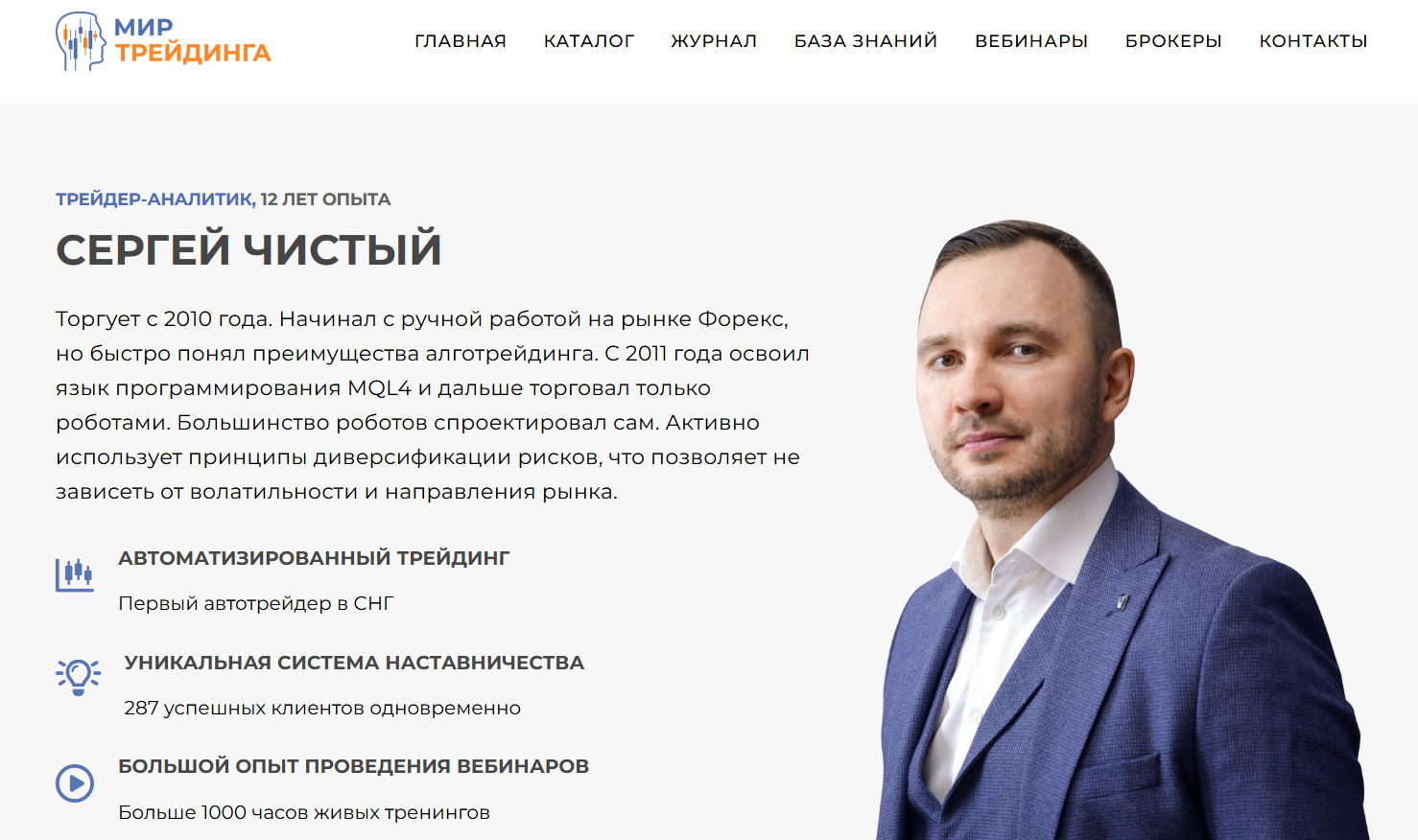 - позиционируется Сергей Чистый как автор первого автотрейдера в СНГ;