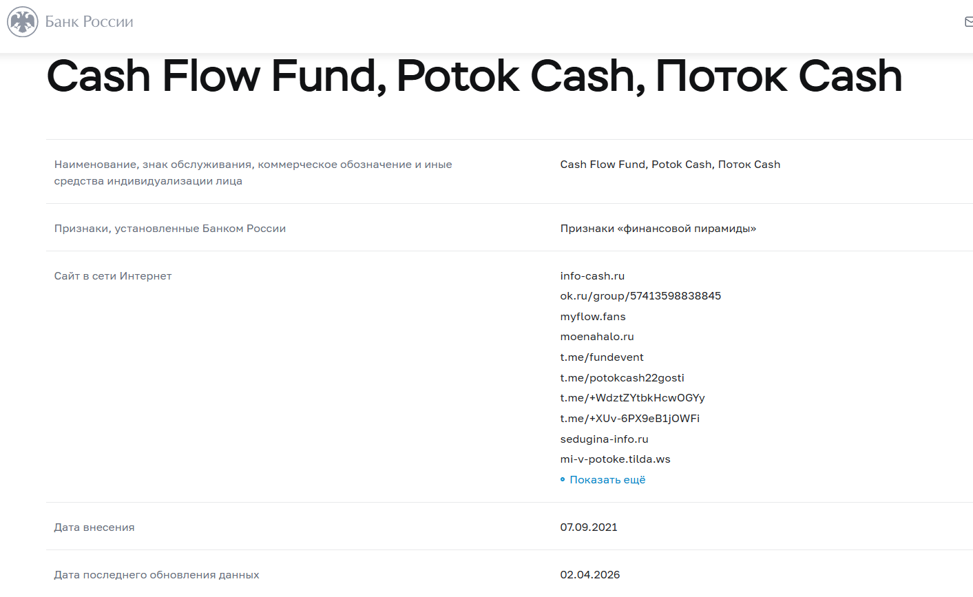 Как отмечают в отзывах о Поток Кеш, уже в начале 2026 года стали появляться сигналы о том, что пирамида находится в стадии агонии: личные кабинеты вкладчиков блокировались, выплаты прекращались.