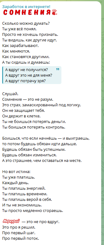 Этот так называемый «инвестиционный проект» от Ирины Пинчук — не что иное, как очередная афера, рассчитанная на доверчивых людей. Мошенники, прикрываясь именем известной личности, создают фальшивые каналы в Telegram и предлагают вложить деньги в несуществующие схемы. После перевода средств они просто исчезают, оставляя инвесторов ни с чем. Это вопиющий пример того, как безнаказанно обманывают людей, играя на их доверии и желании заработать. Такие схемы должны быть немедленно разоблачены и пресечены, чтобы защитить честных граждан от финансовых потерь.