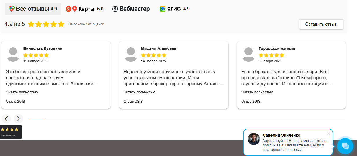 С другой стороны, есть много положительных откликов на туры по Алтаю, которые организует семья Зинченко. Однако, они размещены на сайте компании и не относятся к телеграм-каналу, который мы исследуем. Хотя связь между ними почти очевидна.
