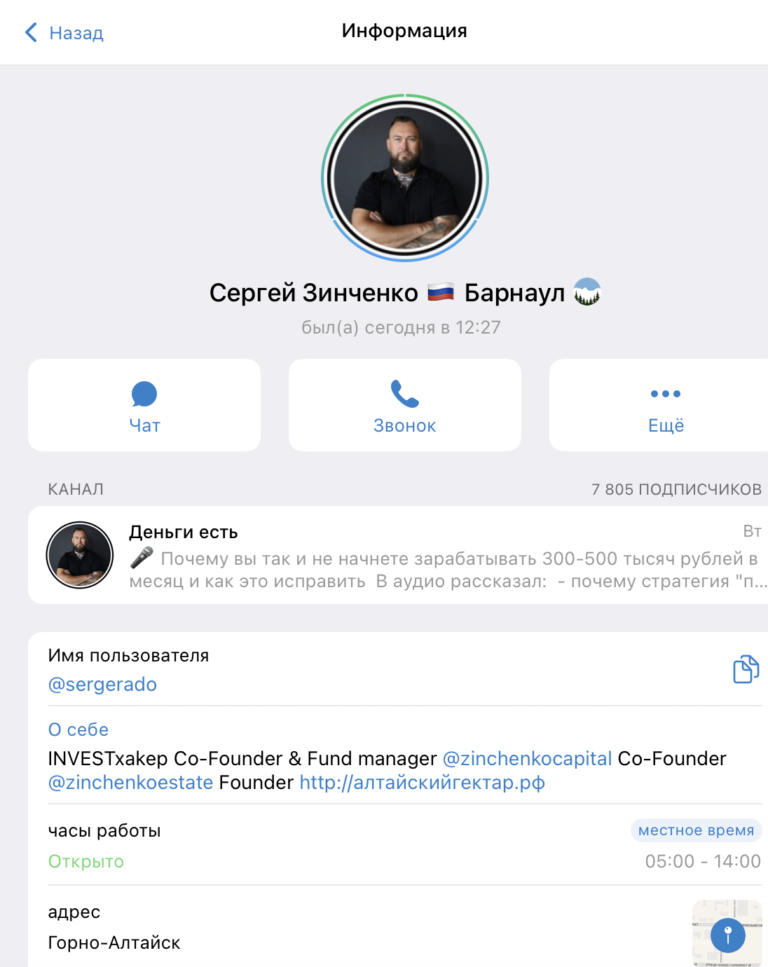 Сергей Зинченко приглашает своих потенциальных подписчиков “инвестировать в Алтай”. Подробности автор не раскрывает в описании личного профиля. Между тем анализ деятельности подобных проектов позволяет выделить ряд общих характеристик, на которые стоит обратить внимание: