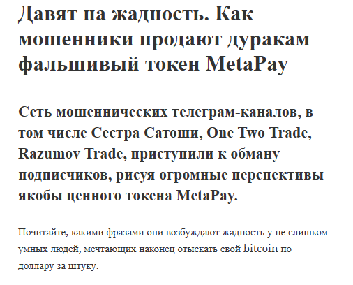 Основная тема — развод именно с токеном MetaPay. Про историю с раскруткой счета мало кто рассказывал.