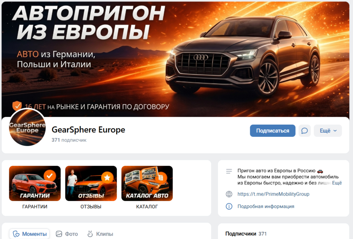 На сообщество «Автопригон из Европы» подписан всего 371 пользователь. Комментарии в группе были доступны подписчикам лишь к одному посту от 19 февраля 2026 года. В дальнейшем, владелец «Сфера Передач» ограничил возможность комментировать. Лайки к сообщениям читатели не ставят совсем. Судя по всему, данное сообщество Вконтакте не пользуется популярностью.