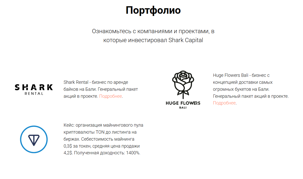 При этом в основном через Shark Capital привлекались инвестиции в бизнесы, либо запущенные непосредственно Пахомовым, либо связанные с ним: