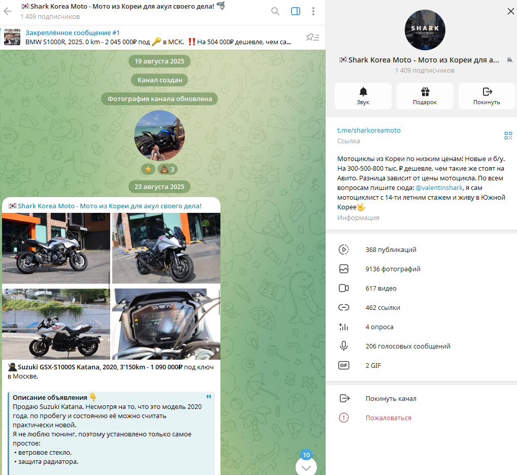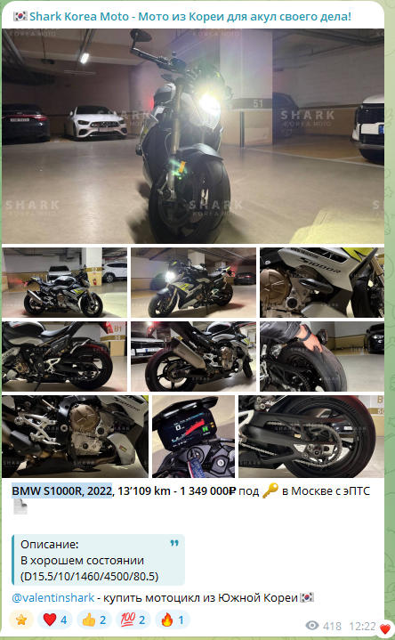 Shark Korea Moto – Телеграм-канал, созданный неким Валентином Пахомовым. Пользователям предлагается мототехника, как утверждается, по ценам ниже рыночных. Shark Корея Мото Телеграмм канал отзывы собрать не успел, оценок аудитории нет. Мы провели его проверку, ознакомились с предложениями, узнали больше о расценках.