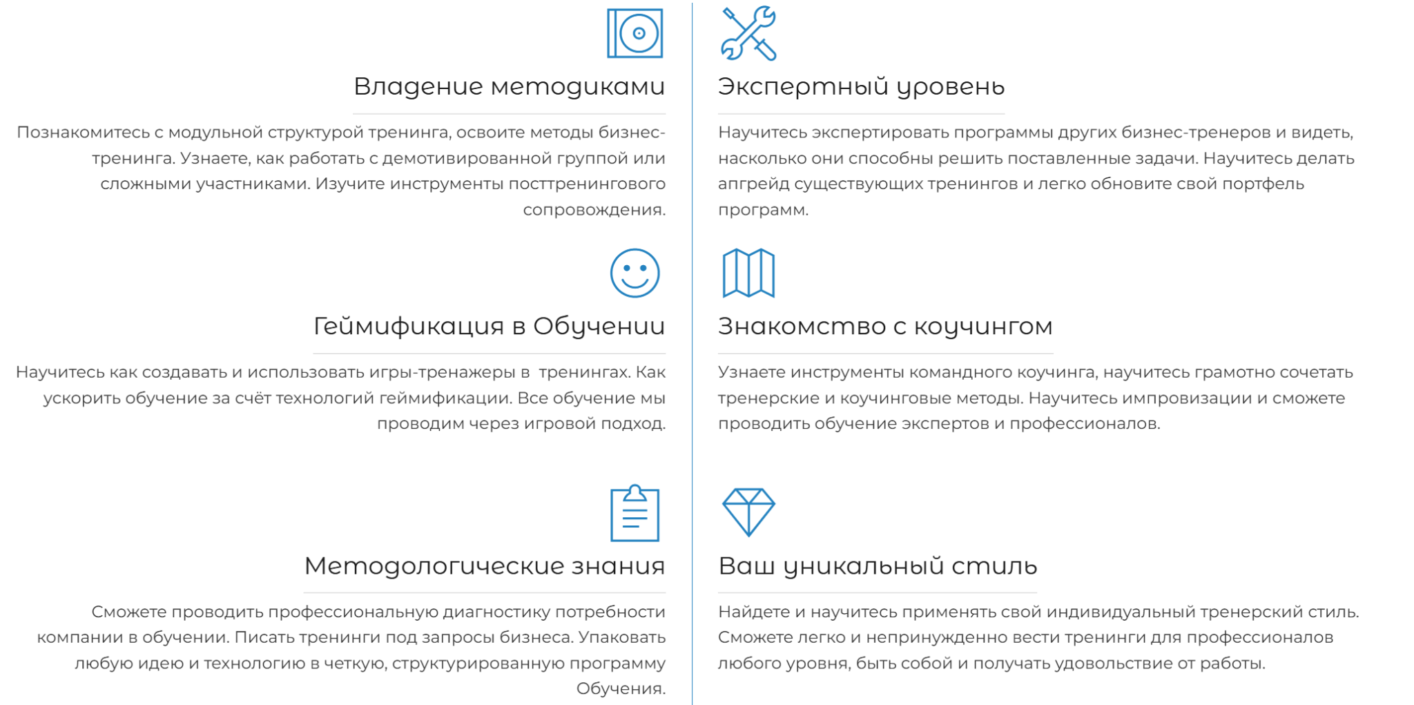 Каждый комплект включает набор материалов для тренера и участников, а также сценарии с учетом групповой динамики. Отдельные услуги – бизнес-игры. Они используются для обучения, мотивации и трансформации в бизнесе. В интернет-магазине школы можно заказать все товары.