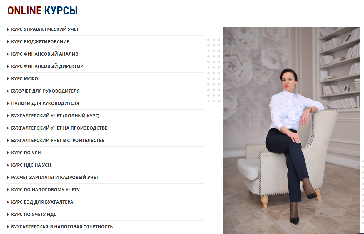 На сайте marina prophet Марина предлагает свои услуги как бухгалтера и образовательные курсы:
