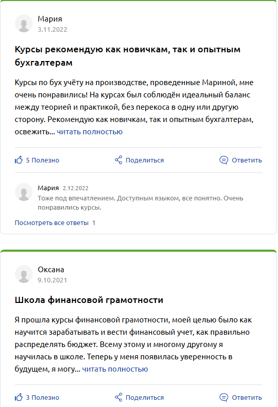 Отзывы Школе Финансовой Грамотности Пророковой Марины представлены на разных платформах, в том числе и на Яндекс Картах. В основном программы получили высокую оценку за содержательность и доступность: