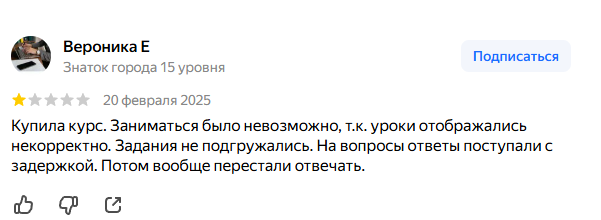 - есть жалобы на технические сбои при прохождении курса;