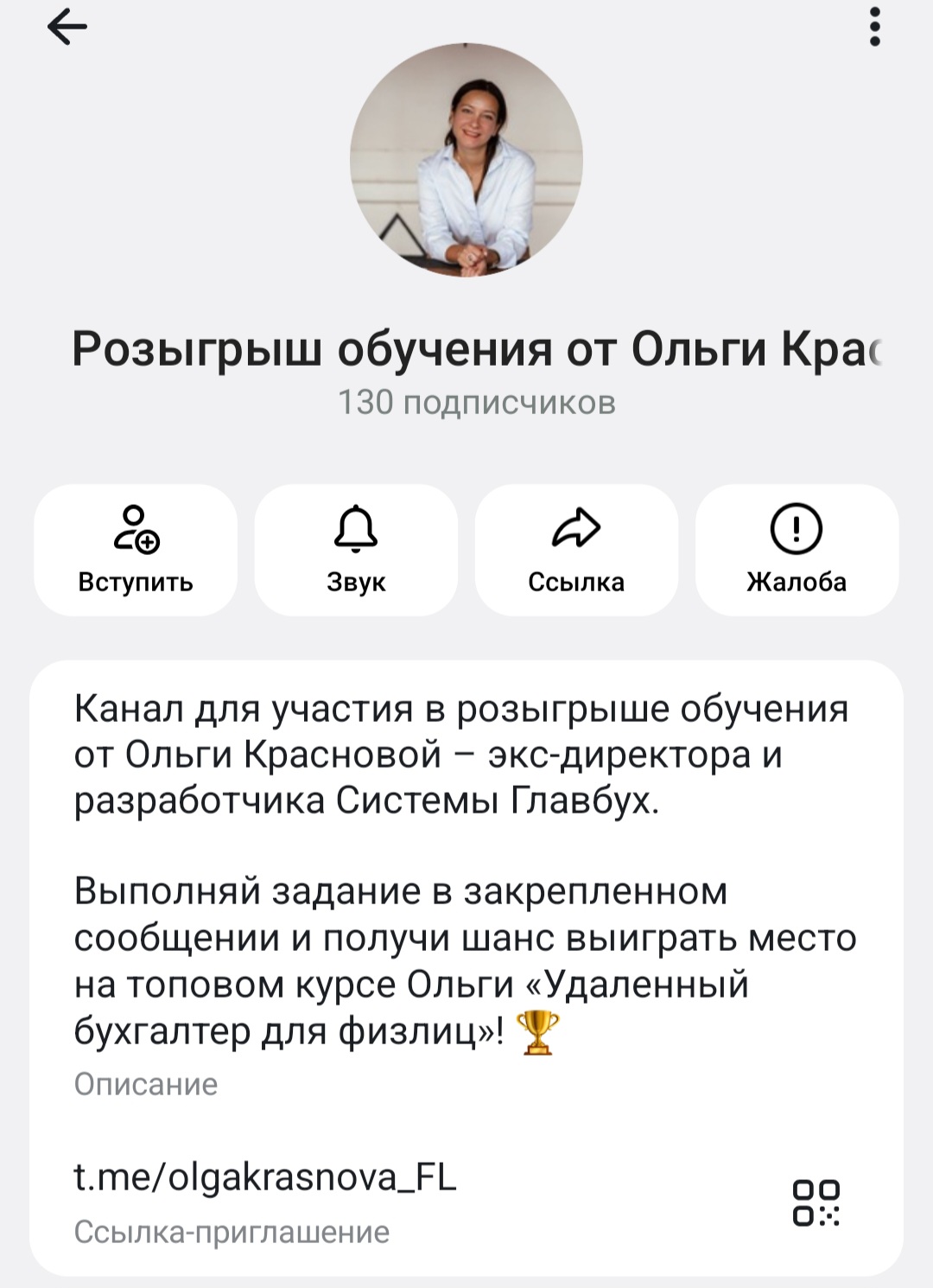 Ольгу Краснову нельзя назвать публичной личностью. В социальных сетях был найден только канал в Телеграмм olgakrasnova fl. Он посвящен розыгрышам обучения. Имеет всего 130 подписчиков.
