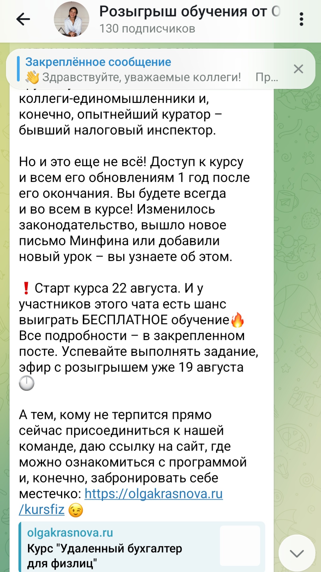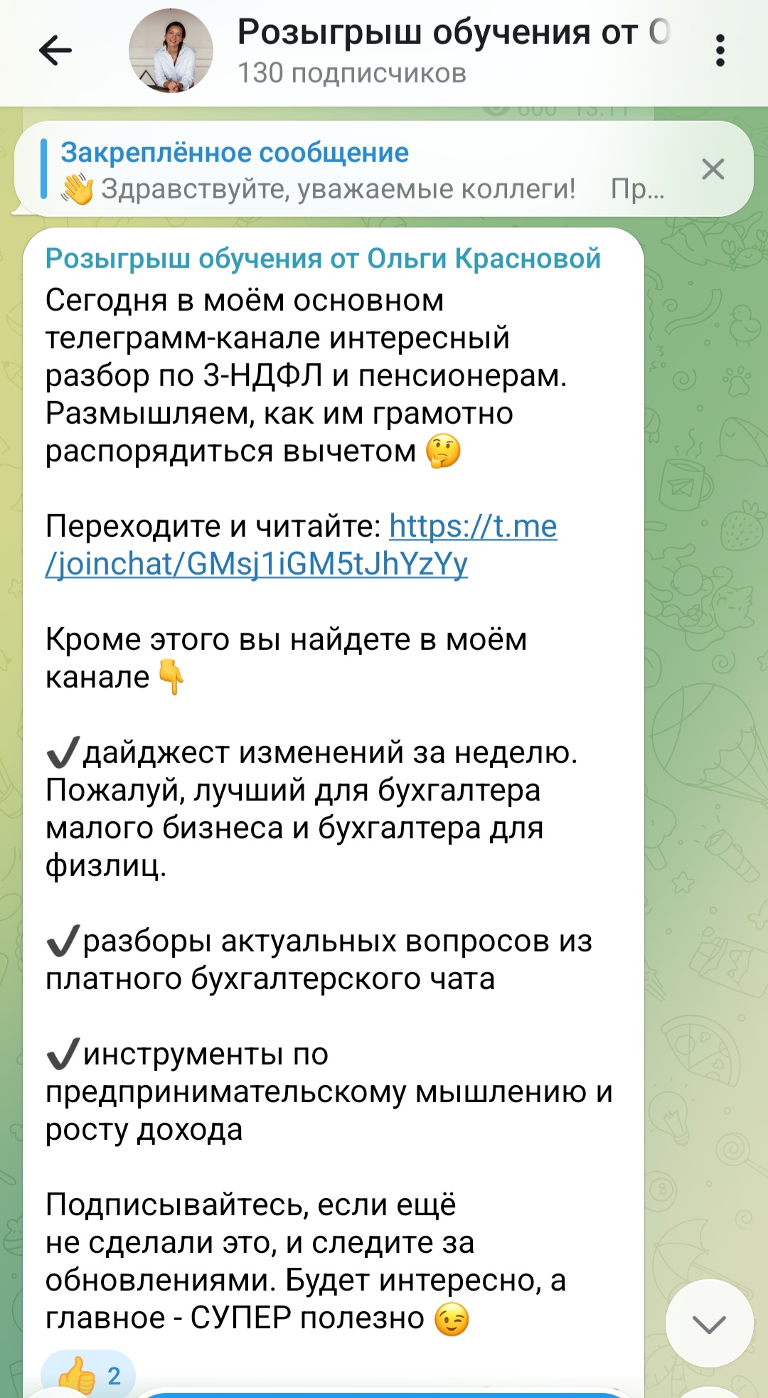 При этом предложений принять участие в розыгрышах в ленте найдено не было. В группе публикуется информация по курсам Ольги, краткие разборы по 3-НДФЛ. Дается ссылка на сайт школы для подачи заявки на обучение.