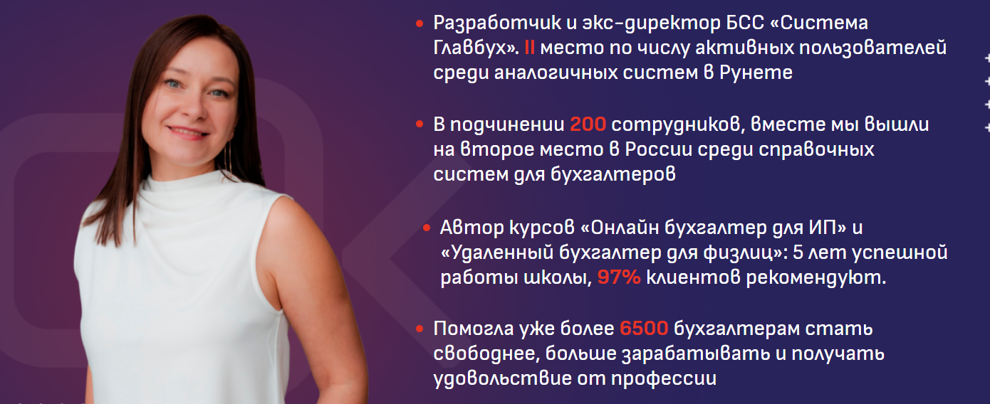 Ольга Краснова предлагает около 8 курсов по бухгалтерии. Среди них: