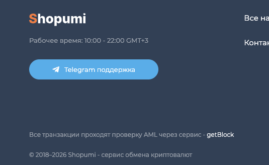 Shopumi com — онлайн-обменник, на котором предлагают инструменты для свопа цифровых активов. Возможностей покупки или продажи крипты при помощи банковских карт не заявлено.