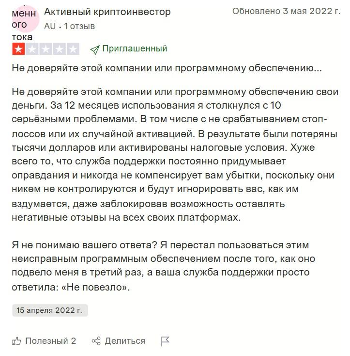 В отрицательных откликах клиенты пишут, что пропадают деньги со счета, часто не срабатывают стоп-лоссы, из-за чего теряется много средств. Служба поддержки оправдывается, а решить проблему не может.