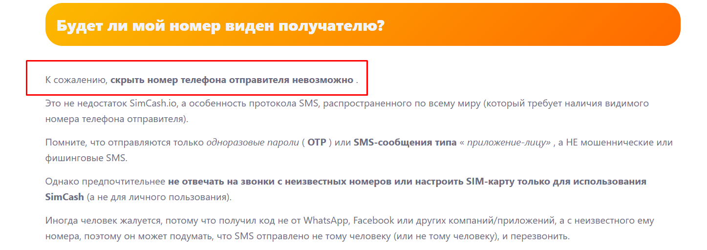 Также в разделе FAQ отвечают на достаточно важный вопрос, будет ли виден ваш номер случайным пользователям и ответ — да. Команда не скрывает, что сохранить анонимность владельца SIM карты невозможно, а значит в случае продвижения серых / черных схем или даже мошенничества вся ответственность ляжет на вас.