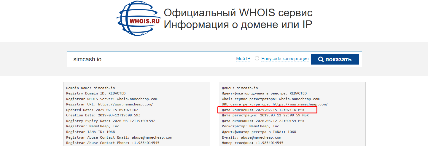 Что касается технических параметров домена, то SimCash io зарегистрировали еще в 2019 году. Однако он был продан в начале 2025 года, а значит сервис по заработку на SIM-картах работает меньше одного года. Упоминаний и отзывов о проекте также немного, а социальные сети отсутствуют. Поэтому популярность СимКэш низкая, а владельцы вероятно продвигаются через нативную рекламу или трафик с коротких роликов, которые особенно популярны в наше время.