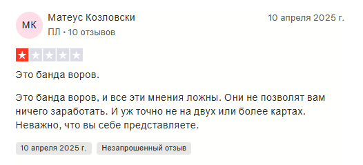 Очередной скам-проект, обещающий золотые горы, а на деле — пустые карманы. Сайт без лицензий, а создатели скрываются за псевдонимами. Отзывы явно накручены, а реальные пользователи жалуются на потерю средств. Не дайте себя обмануть этим мошенникам!