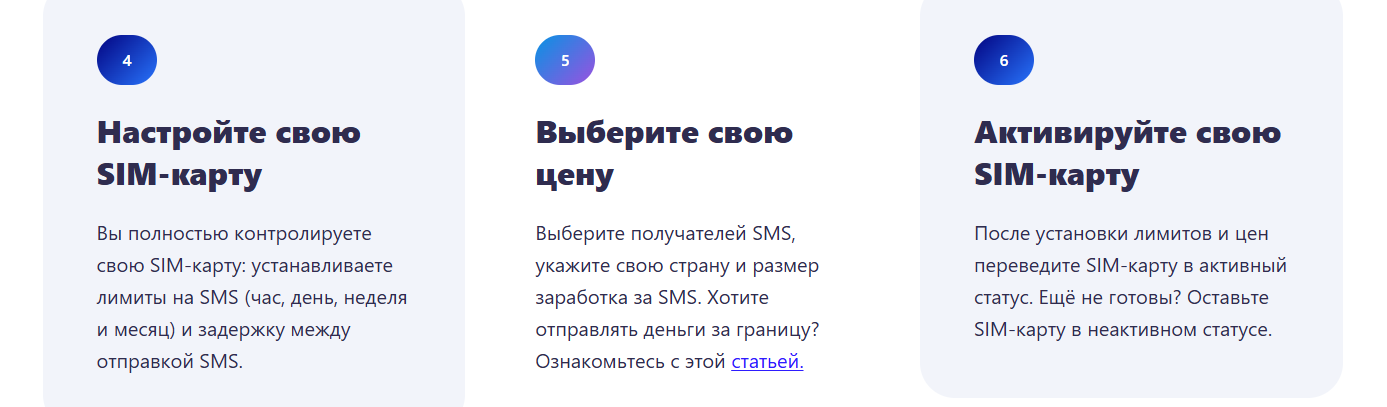 Анализ главной страницы Sim Cash показывает, что она выступает лишь в качестве лендинга и представляет собой одностраничный ресурс с минимальной информацией. Команда бросается несколькими простыми тезисами, типа “заработок на SIM картах”, “легкий доход” или “быстрые выплаты”, однако подтверждений словам нет, а дизайн СимКеш крайне маркетинговый. Вдобавок команда работает неофициально, регулируется все внутренними правилами, а значит вы рискуете остаться без выплат.