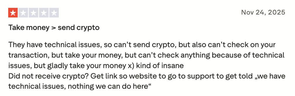 На публичных платформах отзывы о Simplex By Nuvei совершенно разные. Площадки показывают значительное количество оценок и общий рейтинг выше среднего. Пользователи жалуются на высокие комиссии, длительную верификацию, случаи, когда деньги списались, а крипта задержалась, и на сложности с возвратами. При этом многие положительные отклики отмечают удобство и скорость в штатных сценариях. Для трейдера это значит, что расходы при входе картой и риск задержек исполнения сделки — реальные факторы, которые нужно учитывать в торговой сетке.