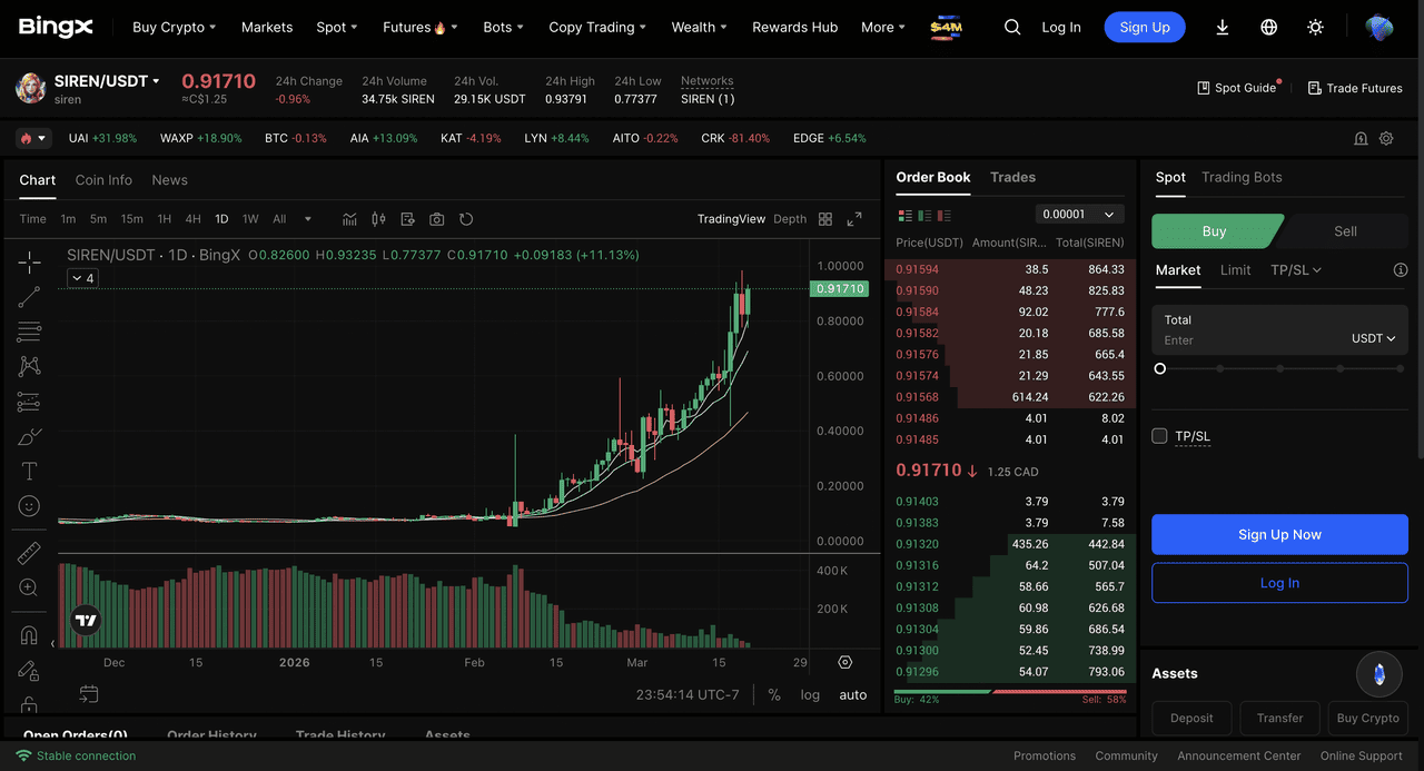 Криптовалюта SIREN торгуется на крупных биржах — Binance, BingX, Bybit, HashKey Global. Фьючерсы доступны с кредитным плечом до 25x. В феврале 2026 года DWF Labs совершила стратегическую покупку токена, что резко подстегнуло интерес к проекту. Именно этот факт вместе со сжиганием предложения стал главным катализатором мартовского ралли.