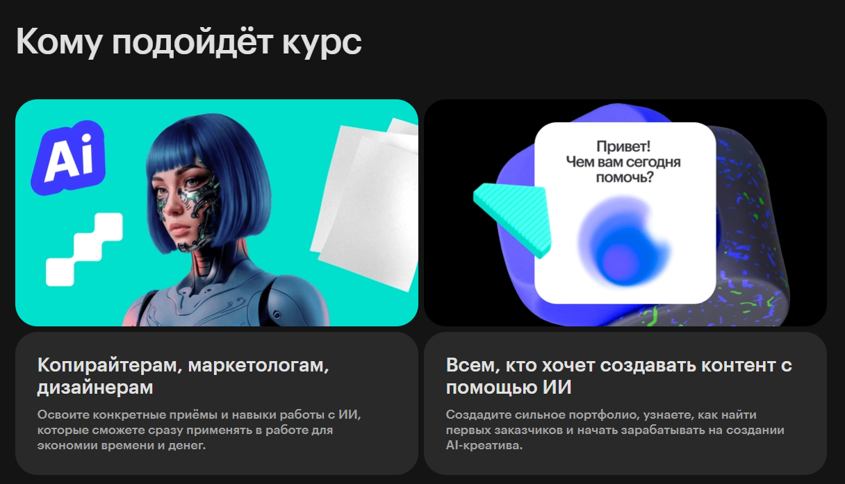 Как отмечается на сайте, обучение подходит для новичков, не имеющих опыта в создании нейроконтента: