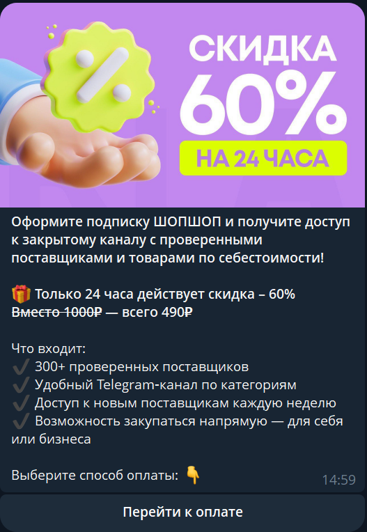ШОПШОП (SkladSale Bot) – бот в Телеграм, через которого пользователям предлагают оформить подписку на закрытый канал, в котором проверенные поставщики продают товары по себестоимости. Схема работы выглядит достаточно сомнительной, SkladSale Bot отзывы в сети не заработал. В связи с этим мы проверили работу сервиса. Результатами поделимся в обзоре.