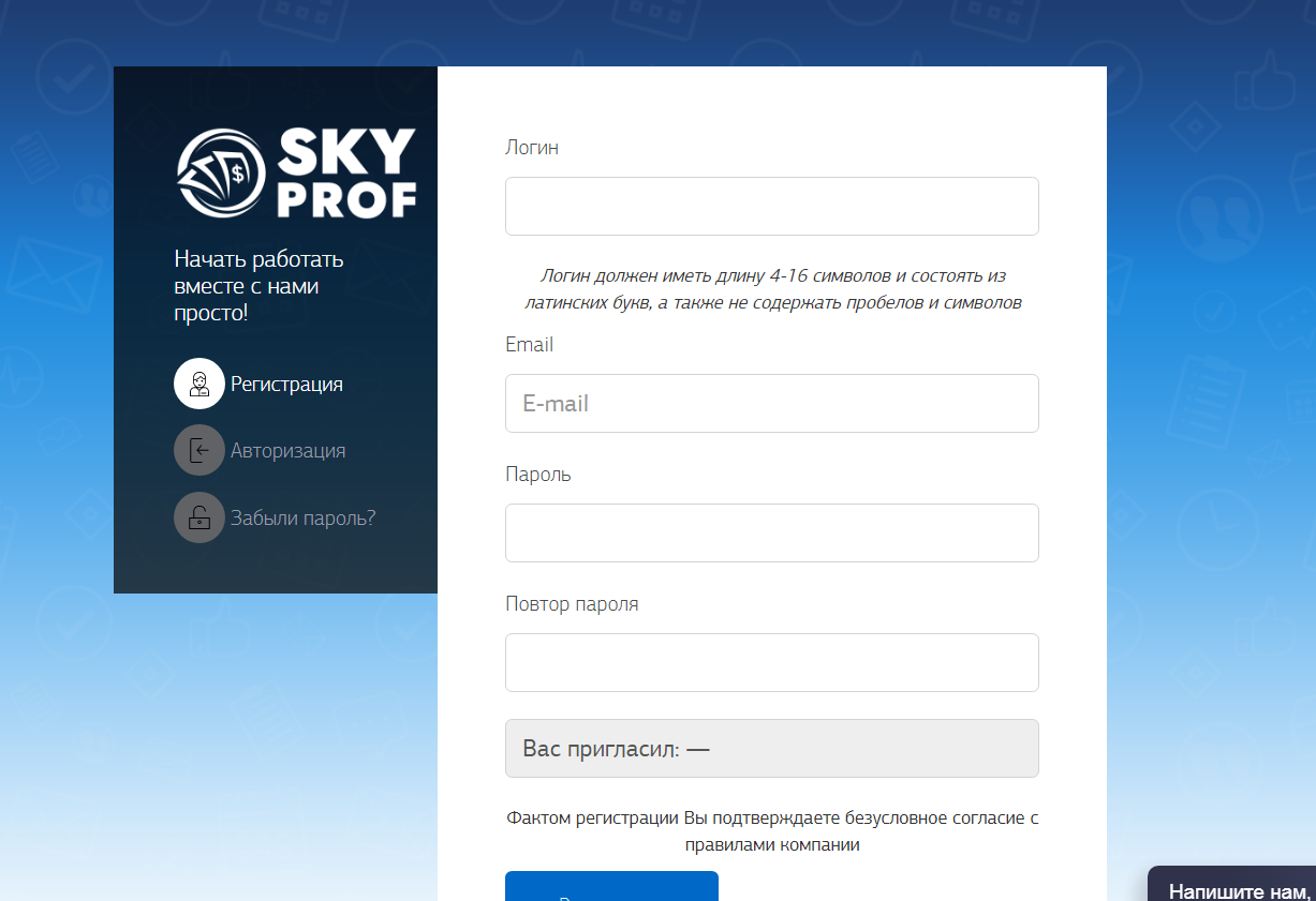 Оставить свой отзыв о Sky Prof cc (Sky Inv cc) можно под данной статьей.