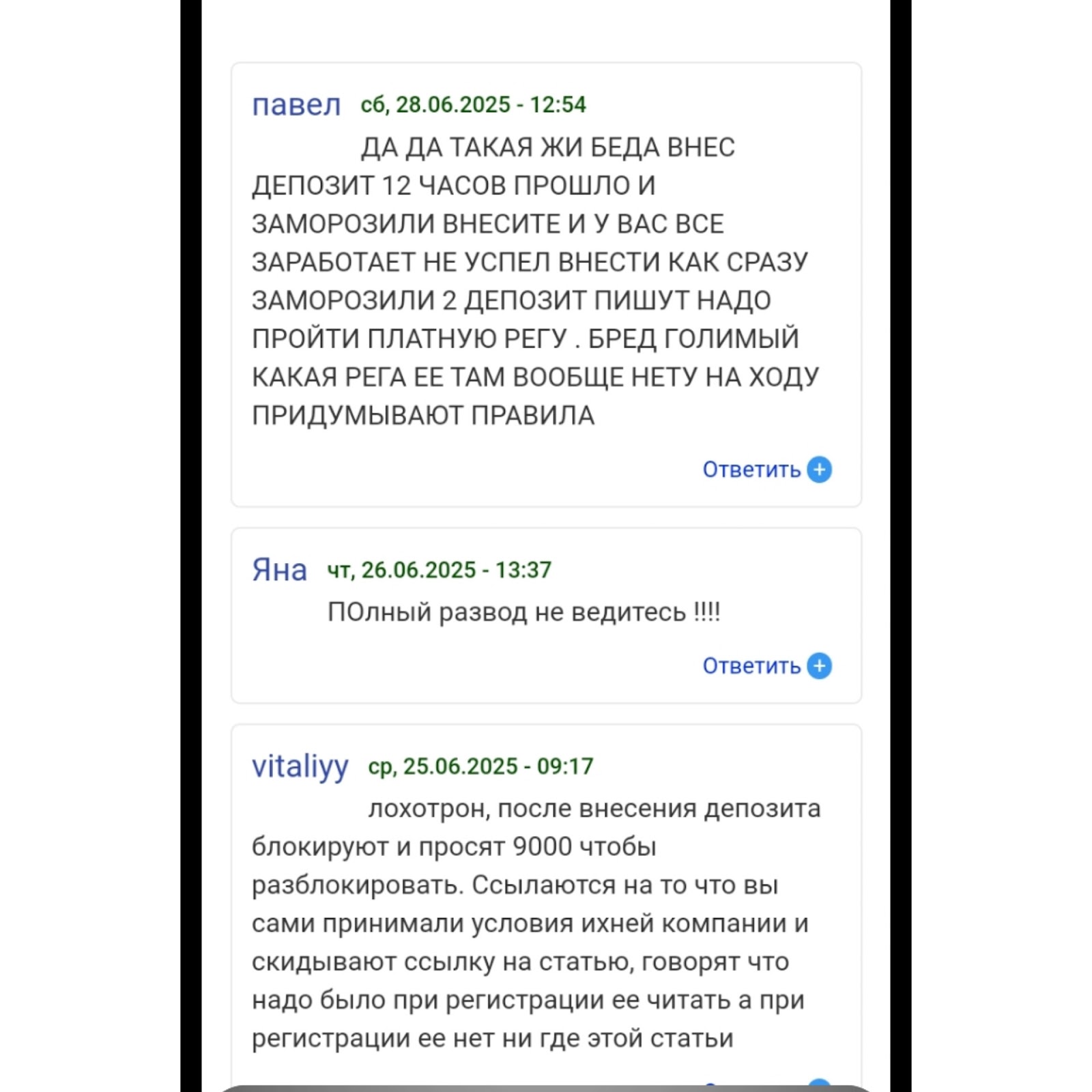 По словам клиентов, основатели занимаются обманом, ведь счета блокируют, и для получения денег просят платить дополнительные взносы.