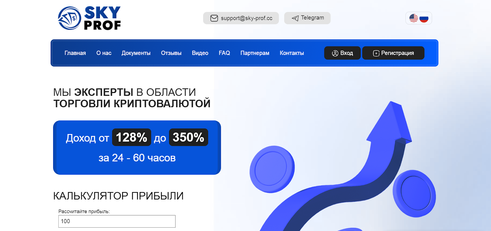 Данные ничем не подтверждены. Сведений о регистрации компании нет, и лицензия не демонстрируется. В базе Центробанка РФ нет упоминаний о проекте для инвестиций Skyprof cc.
