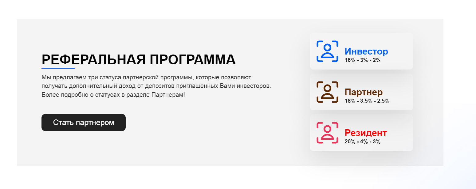 Пользователям предложены такие варианты партнерской системы: