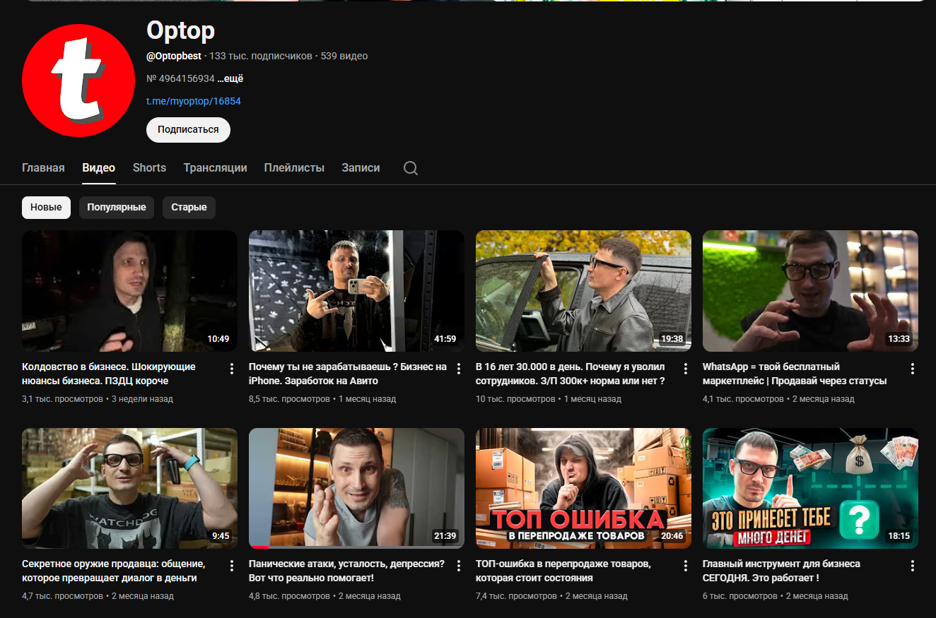 Slivi Tuuut – проект, который запустили авторы сообществ Optop в разных социальных сетях. У основного проекта относительно большая аудитория. Он посвящен информации о бизнесе, связанной с перепродажей товаров на разных площадках. На Ютуб-канале ОптТоп более 100 тысяч подписчиков. Но редко видео набирают больше 10к просмотров: