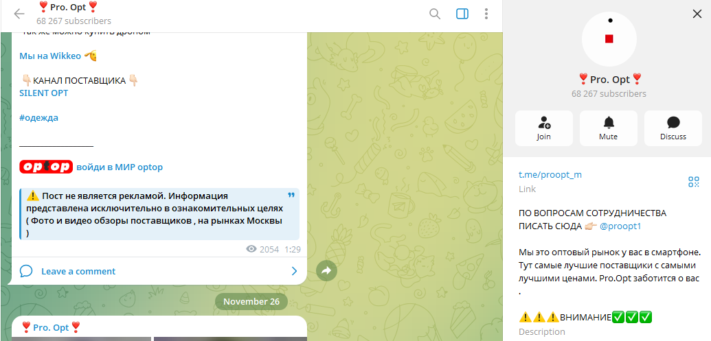 Часто выходят объявления от поставщиков, но не меньше публикаций, которые просто репостятся с основных каналов авторов.