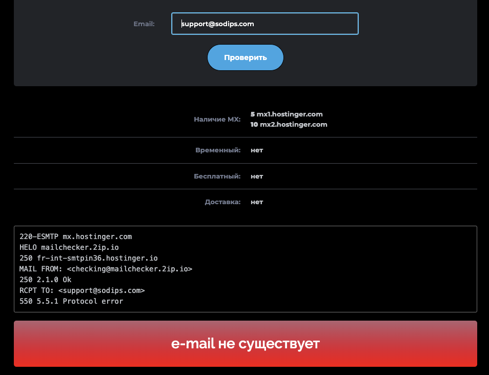 Указанный адрес электронной почты является несуществующим:
