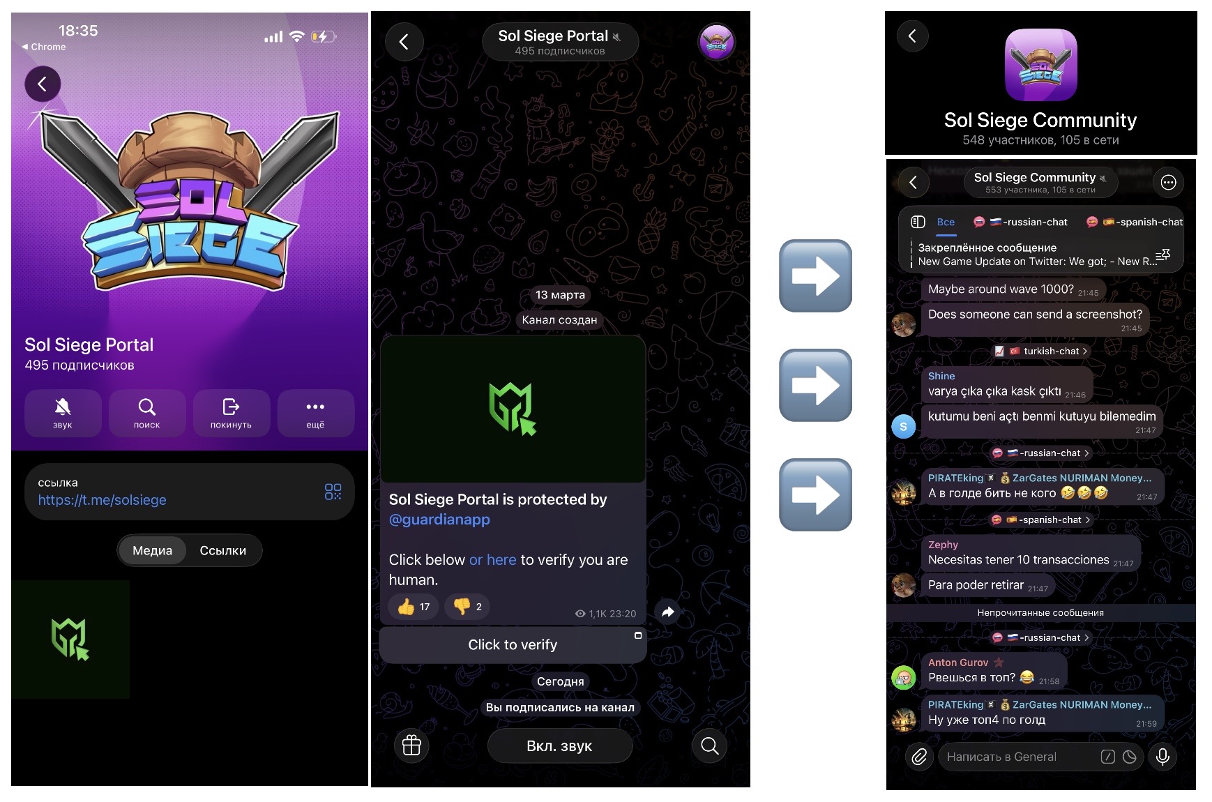 Новостного канала у SolSiege нет, но есть бот, который перебрасывает в пользовательский чат. Ничего особенного вы там не найдете — только обсуждение игровых механик.