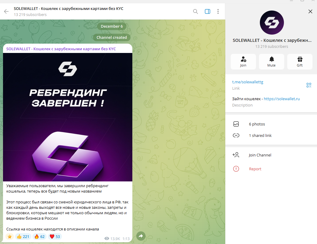 Сайт solewallet ru запустили только в конце августа 2025 года: