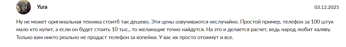 О том, что людей заманивают крайне низкими ценами говорят и другие участники. Предполагается, что в действительности отправлять никакие телефоны покупателям не будут, просто присваивая себе деньги.