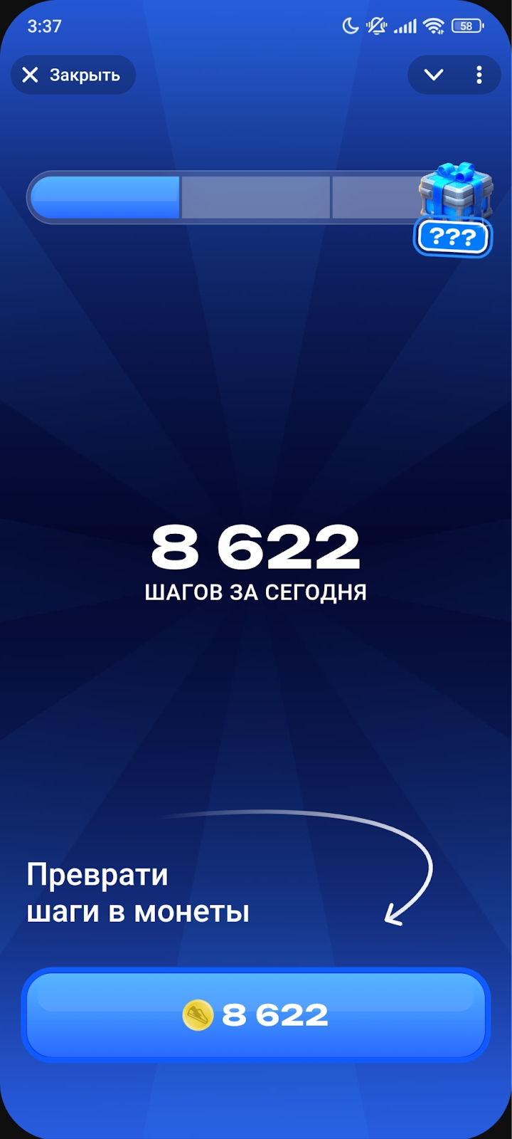 Этот проект — сплошное разочарование. Обещают легкий заработок за шаги, а на деле — бесконечные переходы между приложением и Телеграм-ботом, которые ни к чему не приводят. Монеты за шаги начисляются с перебоями, а призы — это лотерейные билеты с мизерным шансом на выигрыш. Создатели просто наживаются на доверчивых пользователях, предлагая донат для увеличения шансов. Не тратьте время и силы на этот бесполезный сервис.