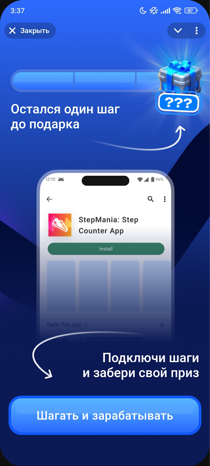 Очередная ловушка для доверчивых: Stepmania обещает заработок за шаги, но на деле — бесконечный круг установки приложений и ботов. Награды мизерные, а шанс выиграть приз — практически нулевой. Создатели просто наживаются на наивных пользователях.